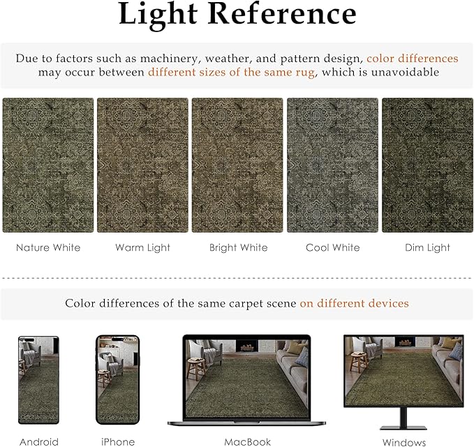 - Classic Vintage Style: PureCozy area rug has a trendy faded style and a unique retro pattern, distressed design blend perfectly with your home, suitable for the living room, bedroom, dining room, laundry room, entryway, kids' room, playroom, kitchen and office.