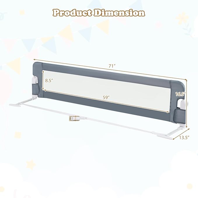 - Protect Your Baby's Safety: These 2 pack extra-long bed rails are 71 inches long each for added safety. Also When your kids sleep alone at night, they can provide them with the best protection and safe sleeping environment. They are your kid's safety guard, so you don't have to worry about your baby falling off the bed.