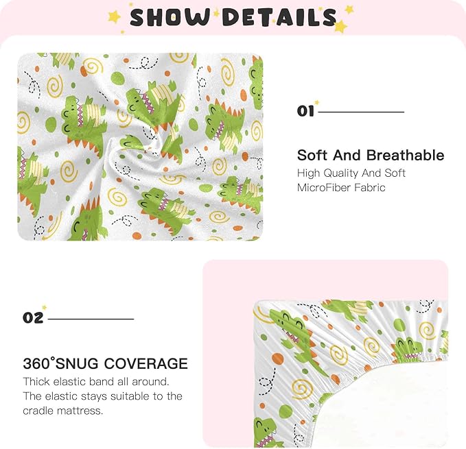 Baby Crib Sheets Little Dinosaur Crib Sheets for Boys Girls,Neutral Bassinet Toddler Bed Play Sheets Breathable Soft and Portable 52 * 28 * 9in