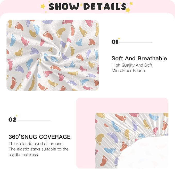 Baby Footprint Crib Sheets for Neutral Bassinet Play Sheets,Sheets Toddler Bed Sheets for Baby Boys Girs 39 * 27 * 5in