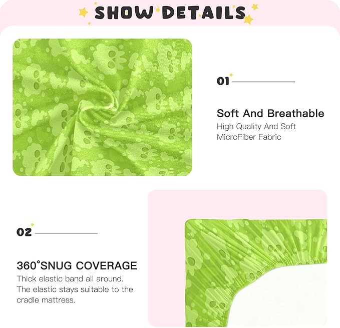 - 【Premium Material】:Gbjiemia crib sheets are made from high-quality imitation cotton modal, consisting of 95% polyester and 5% spandex. This blend ensures that our baby bassinet sheets are soft, breathable, and skin-friendly, providing optimal comfort for your little ones while they sleep or play