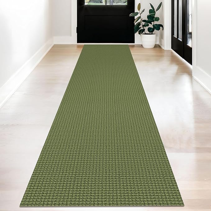 KOZYFLY Long Runners for Hallways 2x12 ft Washable Kitchen Runner Non Slip Rubber Backed Hallway Rugs Cotton Entryway Runner Rug Floor Carpet for Indoor Hall, Kitchen, Olive Green/Earthy Green