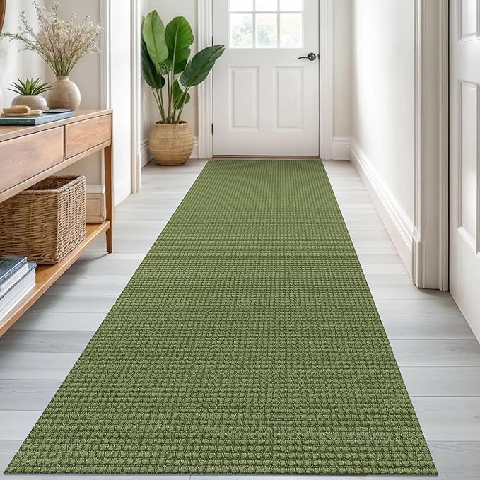 KOZYFLY Runners for Hallways 3x8 ft Washable Kitchen Runner Non Slip Rubber Backed Hall Runners Cotton Entryway Runner Rugs Floor Carpet for Indoor Backdoor Bedroom Kitchen, Olive Green/Earthy Green