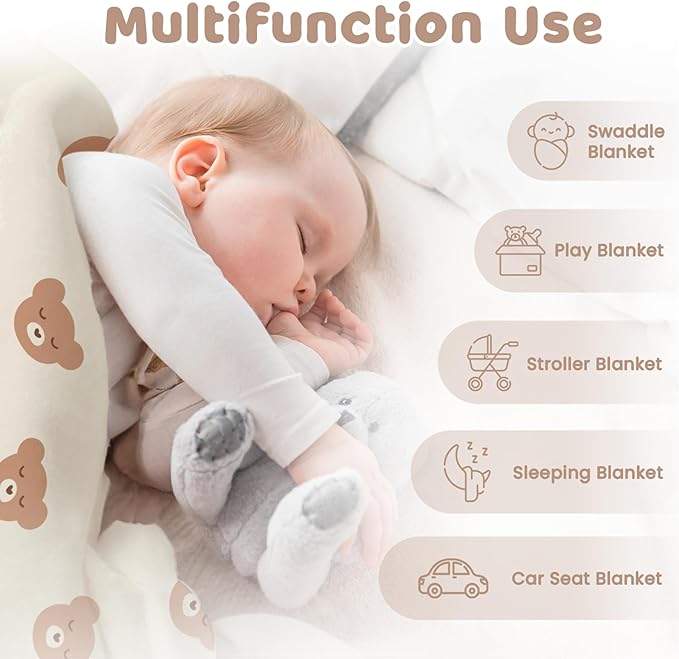 - Comfortable material: the baby blanket is light and breatable, ensuring your little one stay comfortable all year round; one side features a smooth surface while the other is 3D dotted