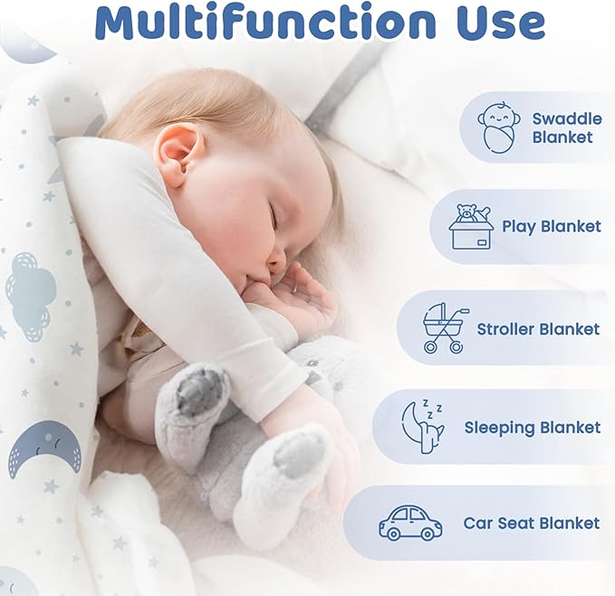 - Comfortable material: the baby blanket is light and breatable, ensuring your little one stay comfortable all year round; one side features a smooth surface while the other is 3D dotted