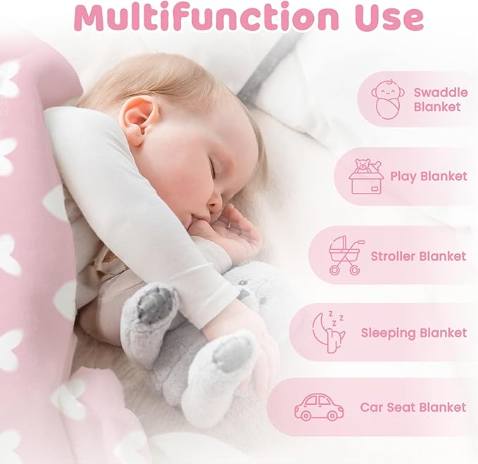 - Comfortable material: the baby blanket is light and breatable, ensuring your little one stay comfortable all year round; one side features a smooth surface while the other is 3D dotted