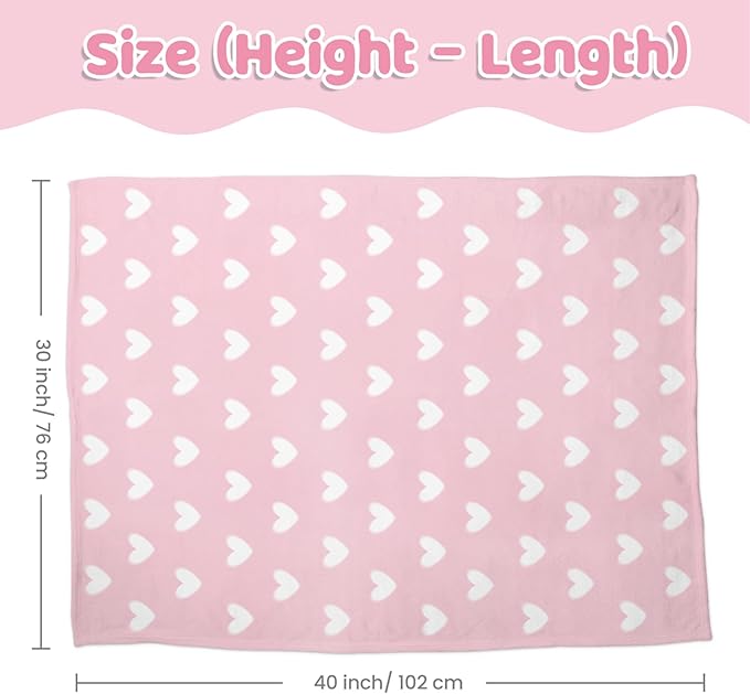 Heart Minky Baby Blanket 30 x 40 Inches for Girls, Soft Plush Receiving Blanket with Dotted Back, Gift for Toddler Newborn Infant Christmas Birthday Baby Shower