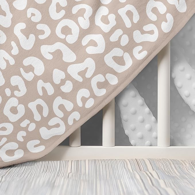 Leopard Print Minky Baby Blanket 30 x 40 Inches for Girls, Soft Plush Receiving Blanket with Dotted Back, Gift for Toddler Newborn Infant Christmas Birthday Baby Shower