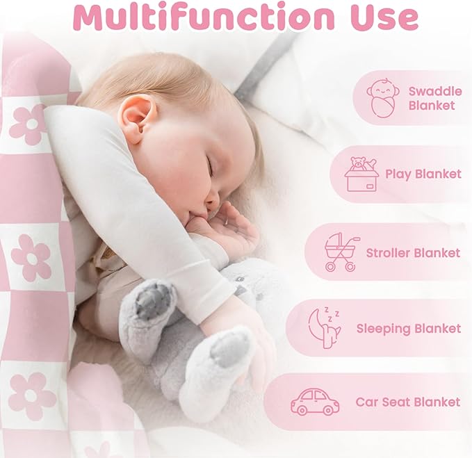 - Comfortable material: the baby blanket is light and breatable, ensuring your little one stay comfortable all year round; one side features a smooth surface while the other is 3D dotted