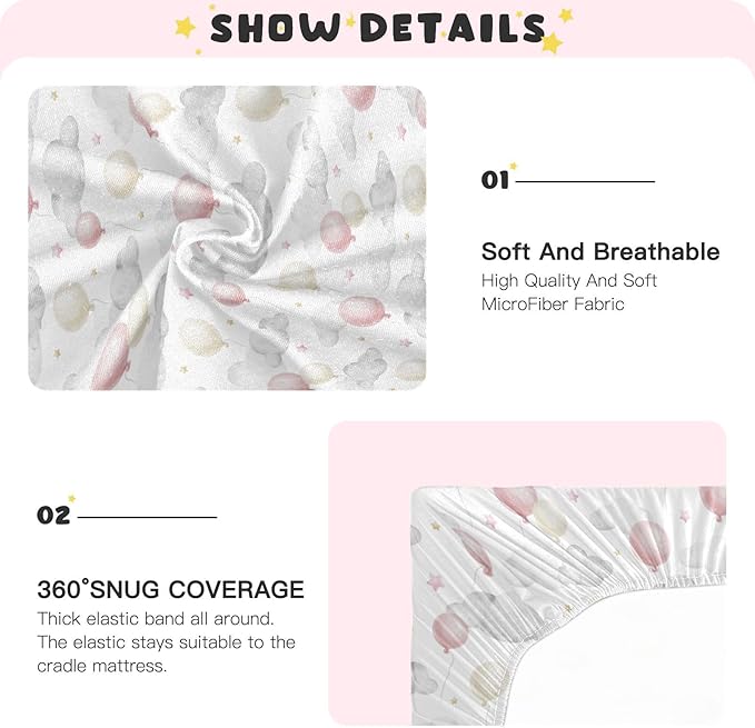 - 【Stylish Designs】: Choose from a variety of patterns and colors that cater to both boys and girls. Our bassinet sheets boy and girl collections allow you to find the perfect match for any nursery decor, helping create a cozy and visually appealing space for your baby