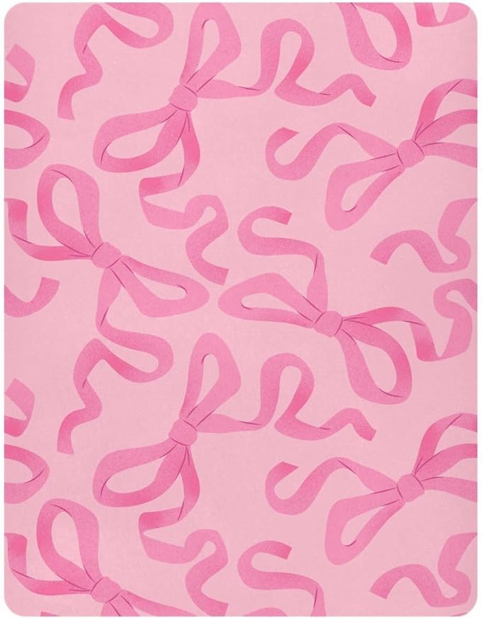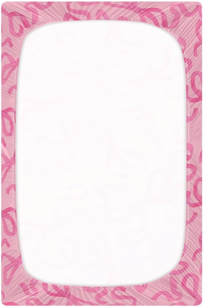 Baby Crib Sheets Pink Bow on Light Crib Sheets for Boys Girls,Neutral Bassinet Toddler Bed Play Sheets Breathable Soft and Portable 52 * 28 * 9in