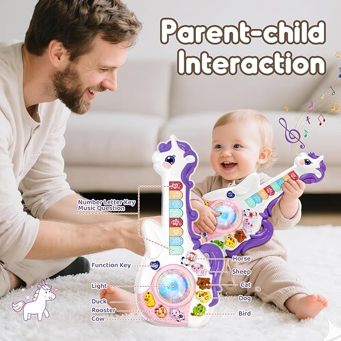 Marstone Toys for 1 Year Old Girl Birthday Gifts: Baby Musical Unicorn Toys 12-18 Months, Educational Cartoon Guitar for Toddlers 1-2, Infant Interactive Learning Present for 1st First Christmas, Xmas