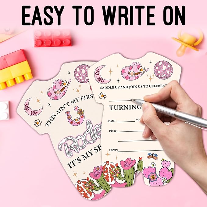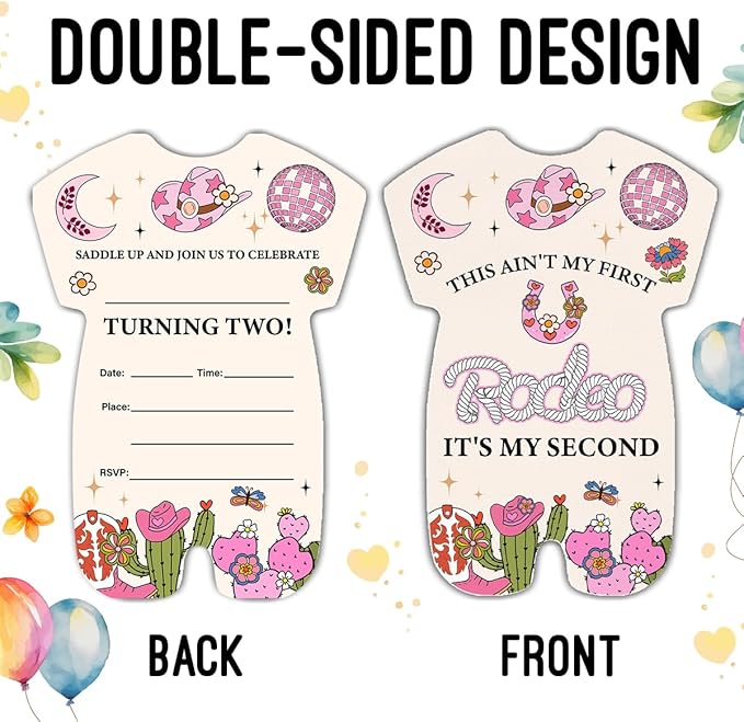 LyoGao Cowgirl 2nd Birthday Invitations - Rodeo Southwestern Western Cowgirl Second Birthday Party Fill in Invites Cards With Envelopes (20 Pack)
