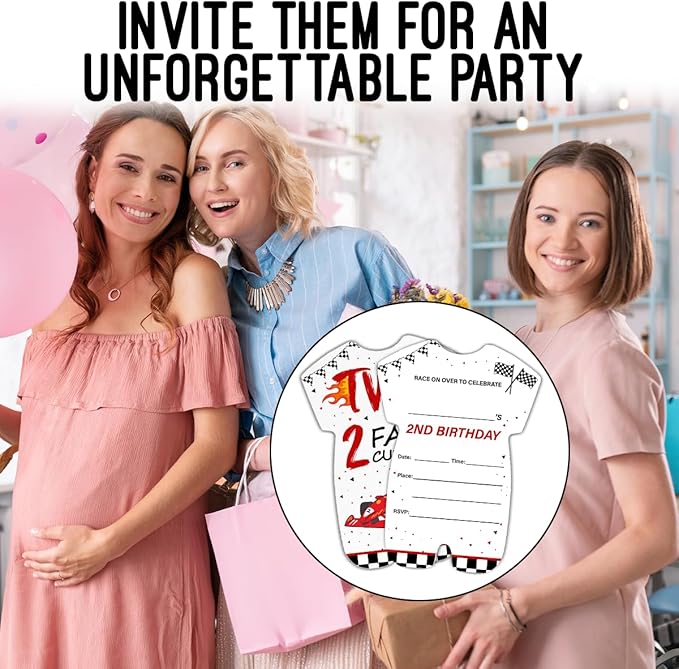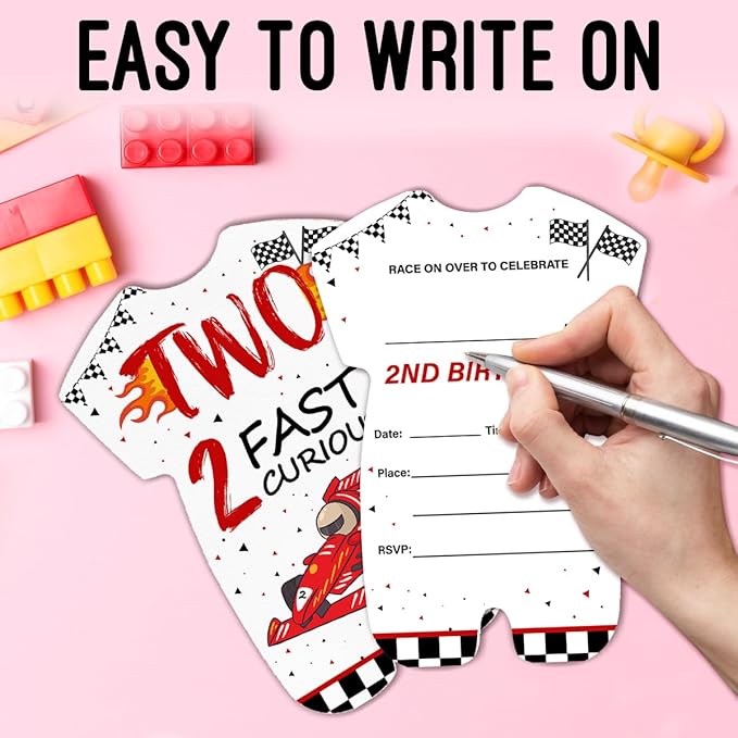 LyoGao Race Car Two Fast Baby Shower Invitations - Racing Car 2nd Birthday Party Fill in Invites Cards With Envelopes (20 Pack)