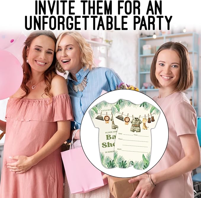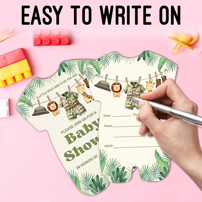 LyoGao Safari Baby Shower Invitations - Greenery Jungle Wild Animal Baby Shower Party Fill in Invites Cards With Envelopes (20 Pack)