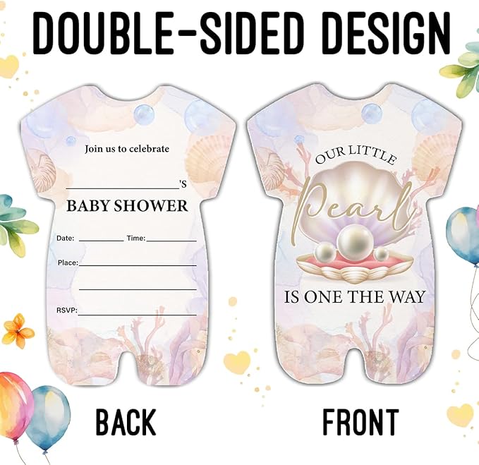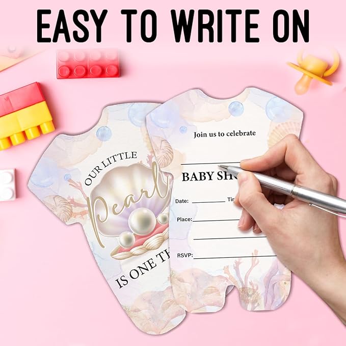 LyoGao Under the Sea Baby Shower Invitations for Girl - Seashell Pearl Baby Shower Party Fill in Invites Cards With Envelopes (20 Pack)