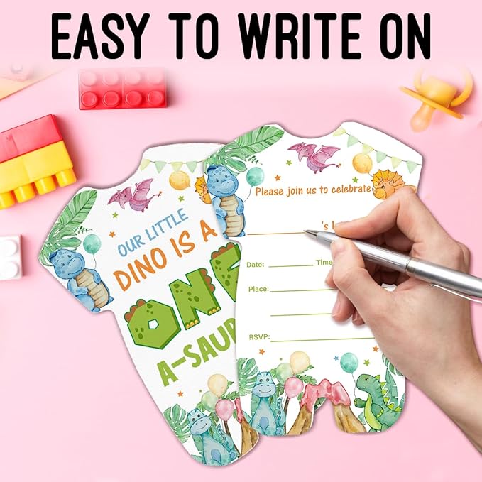 LyoGao Dinosaur 1st Birthday Invitations - Dino Party for Boy First Birthday Fill in Invites Cards With Envelopes (20 Pack)