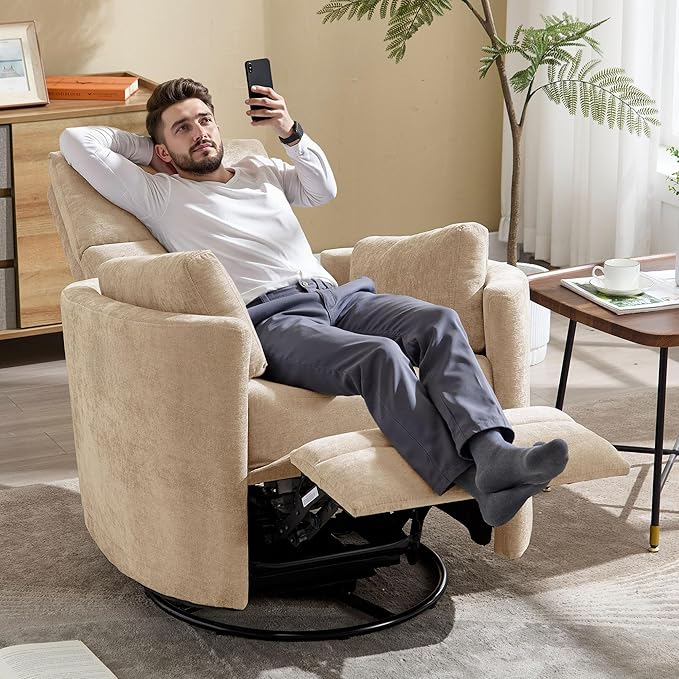 - VERSATILE MOVEMENT: Features 360Β° swivel base, smooth gliding motion, and Manual operation reclining function for maximum comfort and flexibility