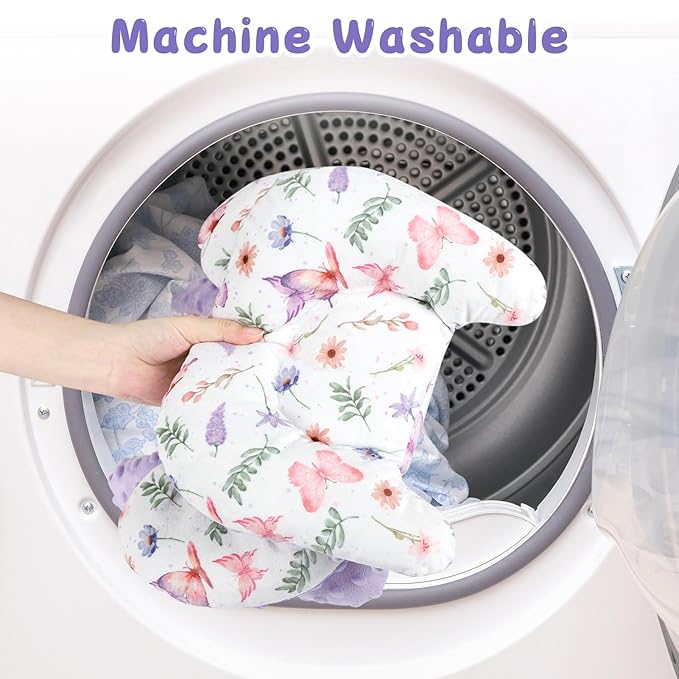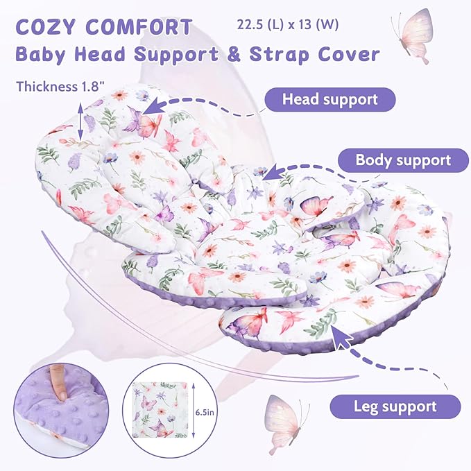 Pea Pod Infant Car Seat Insert with Strap Covers, All in One Reversible Baby Car Seat Head Support for Newborn, 3D Soft Minky Carseat Cushion for Preemie to Infant, Stroller, Swing, Bouncer, Butterfly