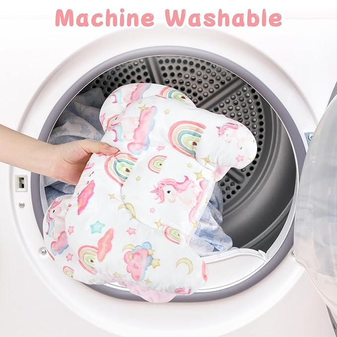 Pea Pod Infant Car Seat Insert with Strap Covers, All in One Reversible Baby Car Seat Head Support for Newborn, 3D Soft Minky Carseat Cushion for Preemie to Infant, Stroller, Swing, Bouncer, Unicorn