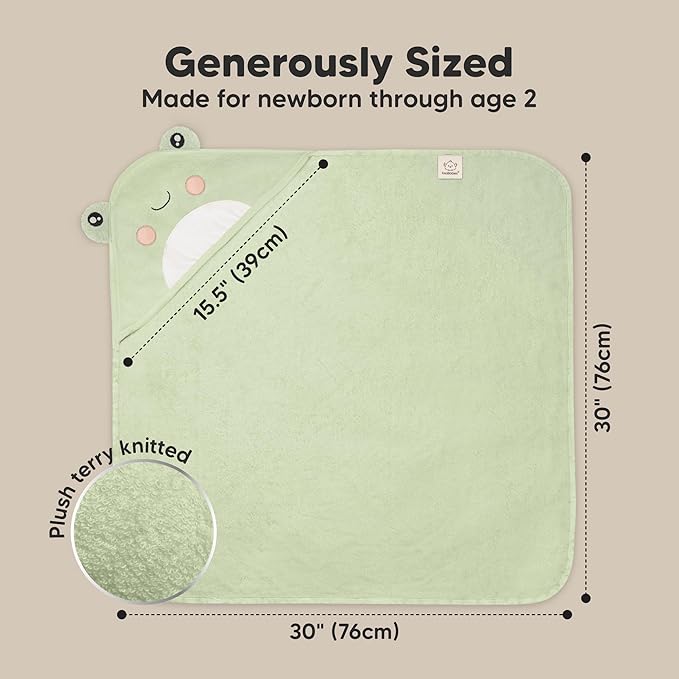 - Large and Durable Hooded Baby Bath Towels β Measuring 30" x 30", KeaBabies Hooded Baby Towels for newborn are built to be long-lasting even with repeated washes. The soft baby hooded towel can be use as your newborn grows into a toddler and up to age 2.