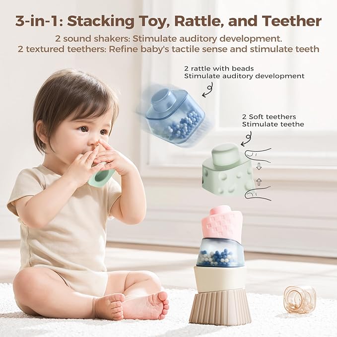 - 【Perfect Use as Teethers & Rattles】: This block set includes 2 soft teether blocks with different textures, which help develop sensory abilities while stimulating teething. 2 clear rattle blocks with colorful beads, allowing baby to connect the sound to sight