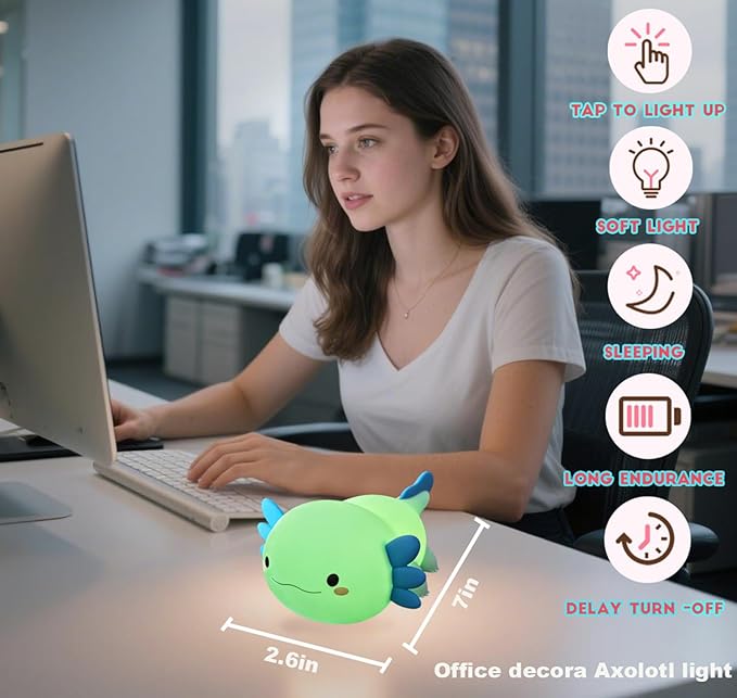 - Perfect Axolotl gifts:The Very Super Cute Night Light Is Used As A Bedside Lamp Not Only For Breastfeeding, Reading, And Preventing Falls During The Night, But Also As A Camping Light, Emergency Light, And Flashlight. Best Gift For Your Friends,Kids Or Yourself. Also A Ideal Gift For Valentine'S Day, Birthday,Children'S Day,Halloween,Christmas And New Year. Suitable For Outdoor Camping, Bedroom,College Dormitory,Office,Party Decoration. Also Very Suitable For New Mommy As Nursery Light