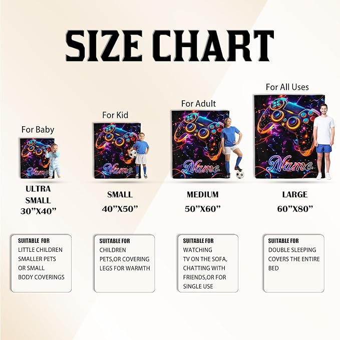 - Multiple Sizes & Colors Baby Blanket -- custom name blanket are available in 5 colors and 4 sizes: 30"x40" , 40"x50" , 50"x60" (single beds), 60"x80" (family movie nights).Select your loved one’s favorite shade to create a treasured keepsake that infuses their world with color. Thoughtfully crafted for both gifting and everyday cuddles, these blankets grow with your child while keeping memories vivid wash after wash.