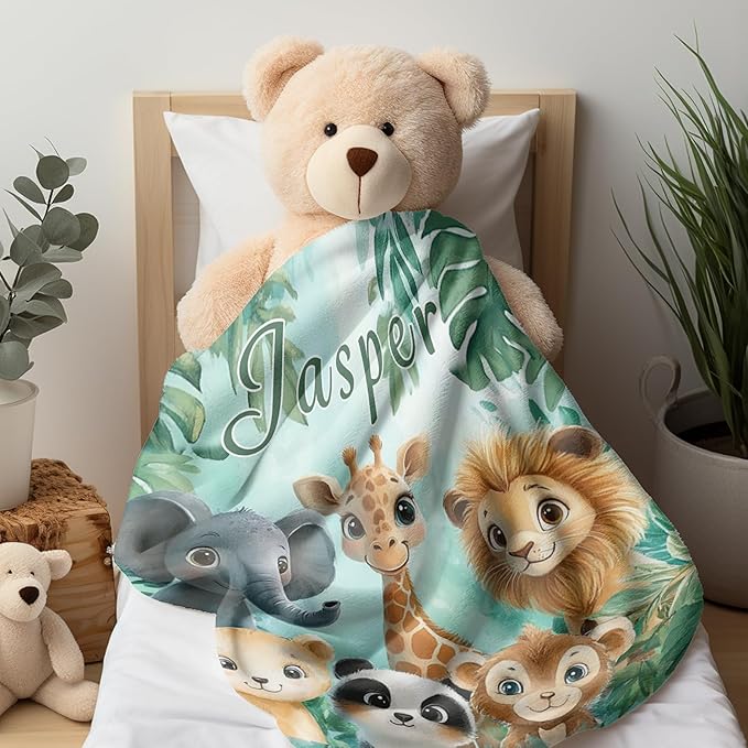Ship Next Day, Personalized Baby Blanket - Printed in USA, Custom Baby Blanket with Name, Customized Animal Blankets for Boys & Girls, Soft Cozy Receiving Blankets for Toddlers, Stroller Decor Throw