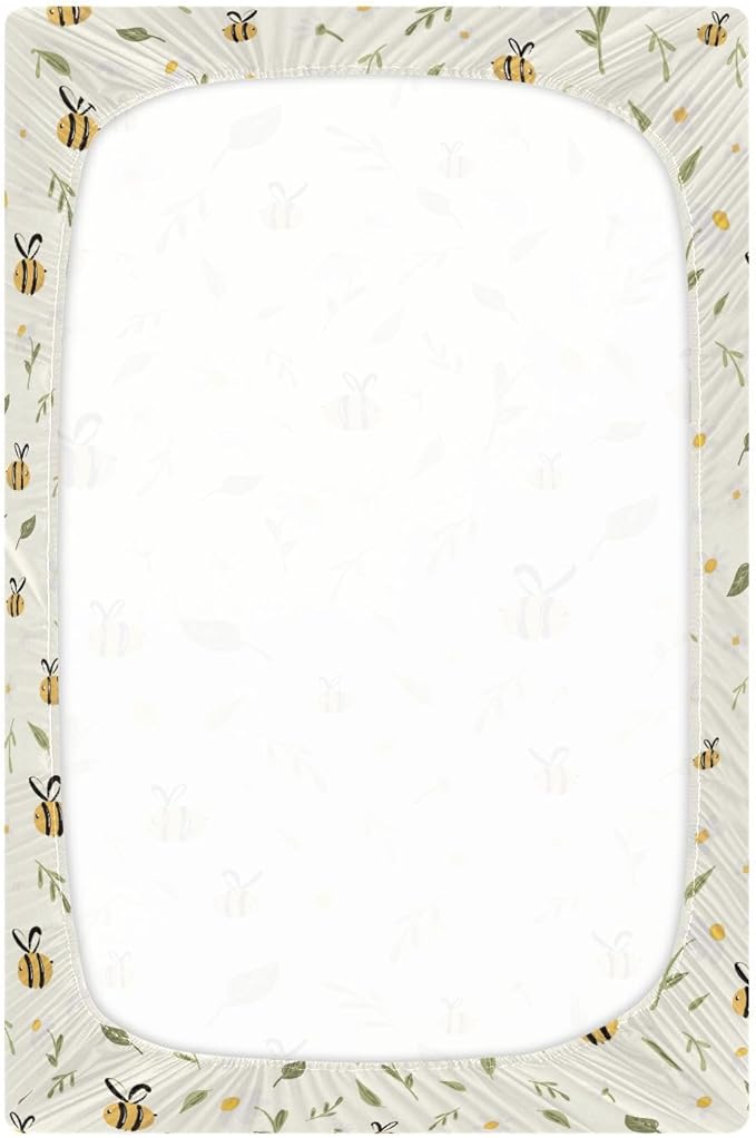 Bee Honey Crib Sheets for Neutral Bassinet Play Sheets,Sheets Toddler Bed Sheets for Baby Boys Girs 39 * 27 * 5in