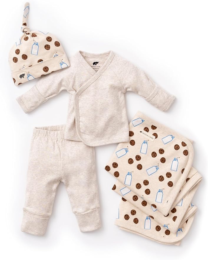 - SOFT FROM THE START: The Hospital Cuddle Box includes three organic swaddle blankets, a top knot cap, and a kimono-style top with crossbody snaps—everything you need to keep your newborn cozy and comfy during those first precious days.