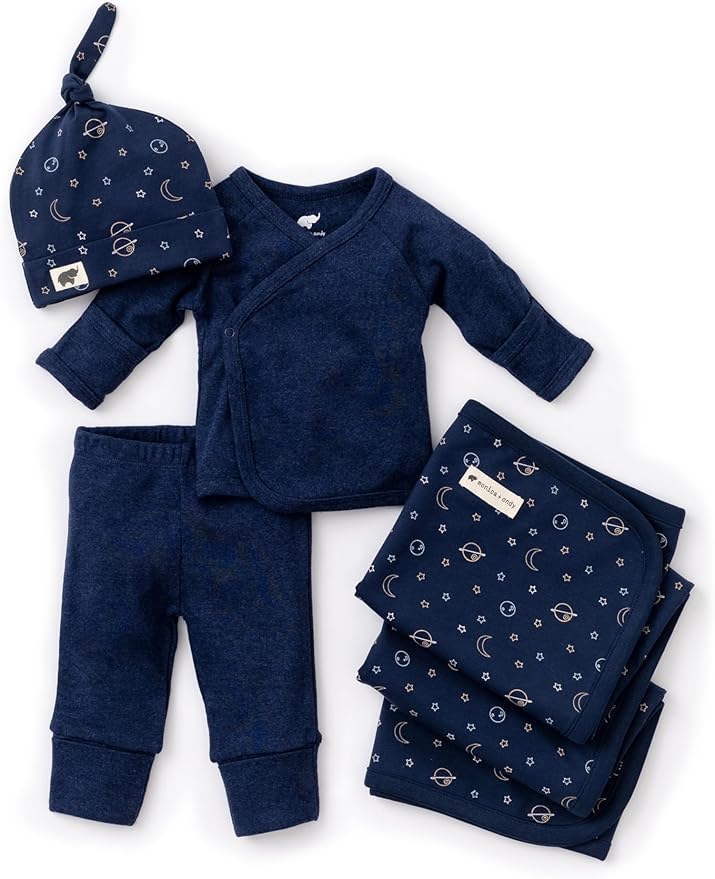 - SOFT FROM THE START: The Hospital Cuddle Box includes three organic swaddle blankets, a top knot cap, and a kimono-style top with crossbody snaps—everything you need to keep your newborn cozy and comfy during those first precious days.