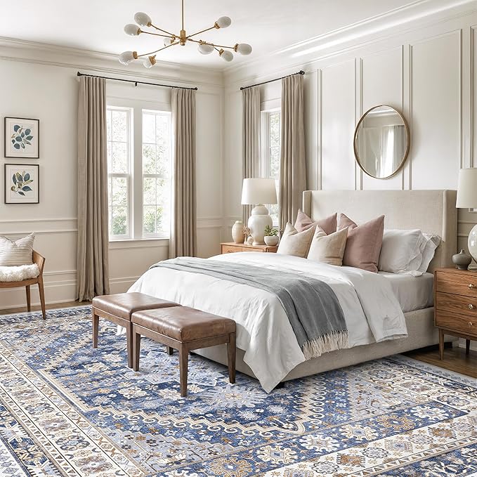zesthome 12x15 Area Rugs, Large Washable Rug, Ultra-Thin Stain Resistant Rugs for Living Room, Bedroom, Non-Slip Backing Home Decor Area Rug (Blue/Beige,12'x15')