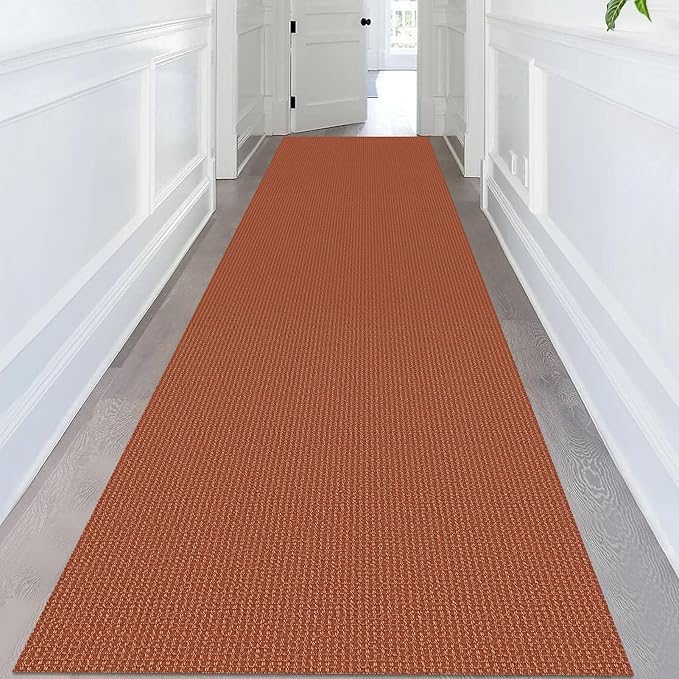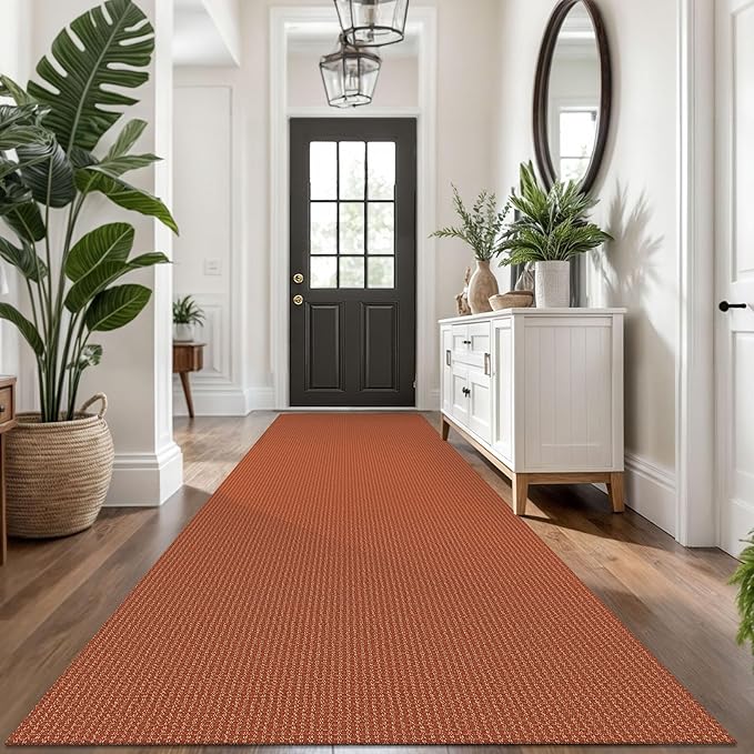 KOZYFLY Extra Long Runners for Hallways 3x14 ft Washable Kitchen Runner Non Slip Rubber Backed Hallway Rug Cotton Entryway Runner Rug Floor Carpet for Indoor Hall, Kitchen, Stair, Orange/Tan
