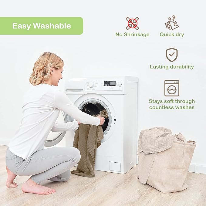 - ๐๐ฎ๐๐ ๐๐ฎ๐ฟ๐ฒ ๐ฎ๐ป๐ฑ ๐๐๐ฟ๐ฎ๐ฏ๐น๐ฒ: The cotton muslin blanket swaddle is machine washable, maintaining softness and shape. This muslin twin blanket is not only durable but also ideal for everyday use, making it a practical choice for busy parents.