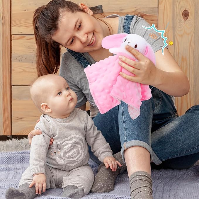 Loveys for Babies,Soft Baby Security Blanket for Newborn Infant Toddler Snuggle Toy Stuffed Animal,Lovey Bunny Security Blankets Baby Girl Gifts(Pink Bunny,12in)
