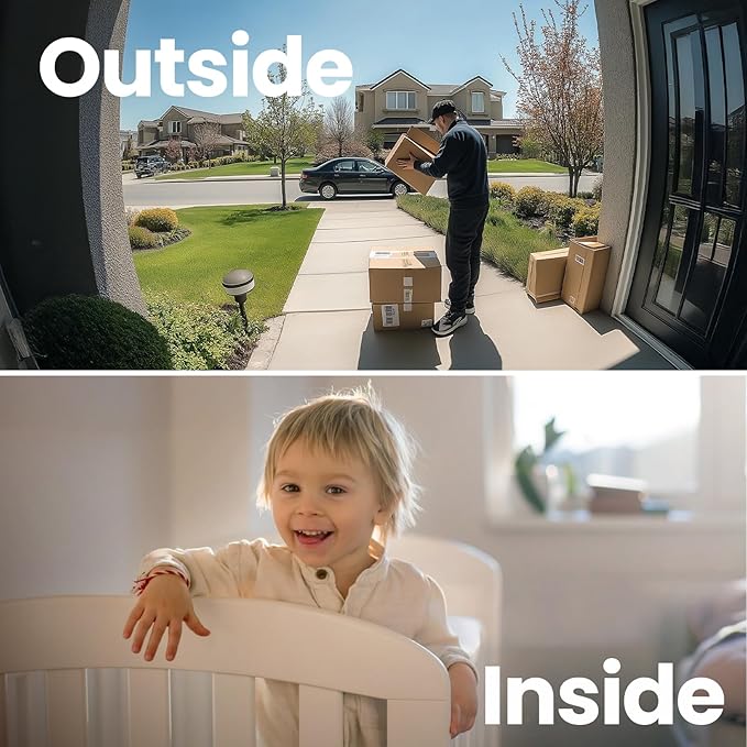 - 【2.5K Resolution with Vivid Color Night Vision】Experience clear visibility day or night with sharp 2.5K resolution. This house camera with video and audio features full-color night vision, enhanced by a built-in LED light, making it ideal for monitoring home, living room, bedroom, room, driveways, garages, front doors, and backyards, ensuring you never miss a detail