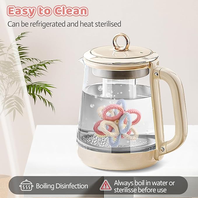 - 🍼High Quality Material: Our baby teether toys are made of 100% food grade silicone, BPA free. No odd smell, no potential small parts. CPSC certified laboratory tested. Dishwasher & freezer safe. Washing with running water after use.