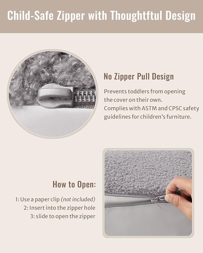 - Sturdy High Density Foam and Washable Cover: Every time your child sits down, it's like soaking in a cozy hug, surrounded by cushiony high-density memory foam and skin-friendly, soft teddy fleece. The cover zips off for easy machine washing