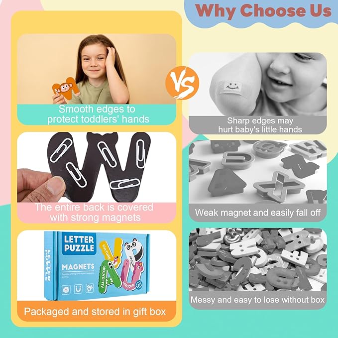 - GREAT GIFT FOR TODDLERS-- These magnetic letters come in a convenient storage box, making them easy to store and carry. They are the perfect educational gift for birthdays, holidays, or any occasion, combining both fun and learning.
