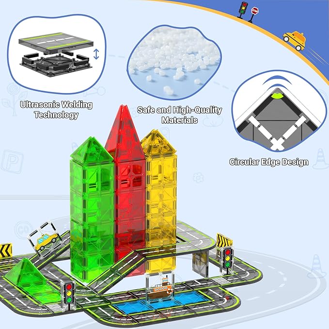 Magnetic Tiles Road Set, Magnetic Building Blocks for Kids Ages 3+Year Old, Montessori Educational Magnet Toys for Toddler Kids, STEM Creative Toy for Christmas Birthday Gifts