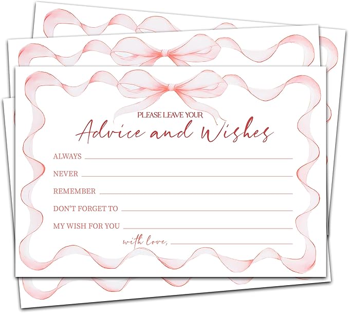 Advice And Wishes Cards (25pcs), Pink Bow Advice Cards For Mr And Mrs, Bride And Groom, New Parents, Bridal Shower, Baby Shower, Engagement, Wedding, Bachelorette Party Games Decor -A10
