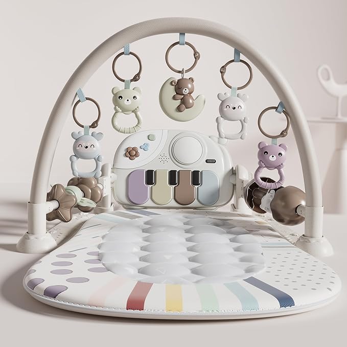 Baby Gym with Kick and Play Piano, Baby Play Mat Tummy Time Activity Gym Mat with 5 Infant Sensory, Music & Lights Boy or Girl for Newborn 0 to 3 6 9 12 Months