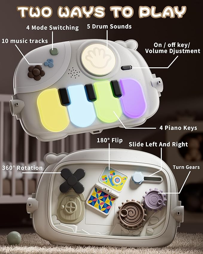 - 【Multifunctional Piano】Designed for babies aged 0-12 months, it can be used as a pedal piano. The piano has a built-in LED soft light to protect the baby's eyesight. The back can be touched and explored to develop fine motor skills.