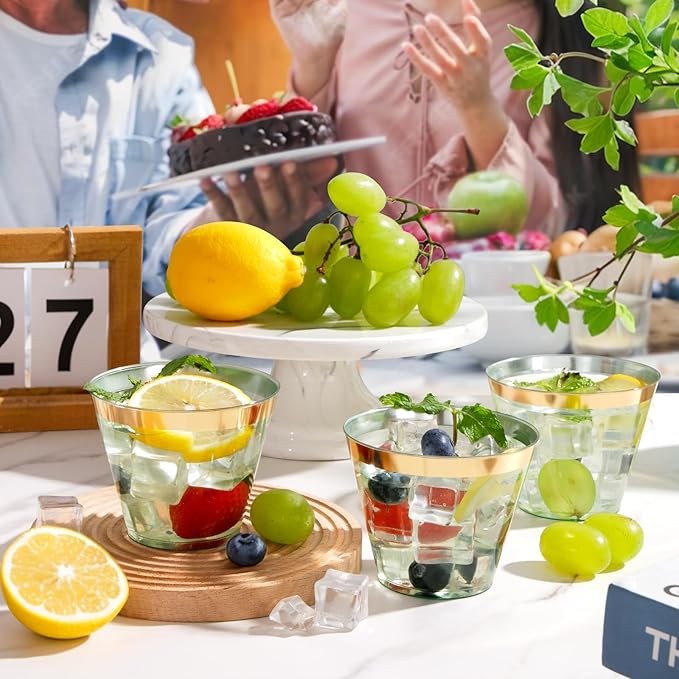 - Versatile Use for Every Celebration: These clear green and gold plastic cups are ideal for a wide range of events, such as summer, pool party, holidays, weddings, birthdays, beach parties, Halloween, Thanksgiving, Christmas party, and gatherings; the elegant gold rim design of the plastic wine cups for party suits both casual and formal settings.
