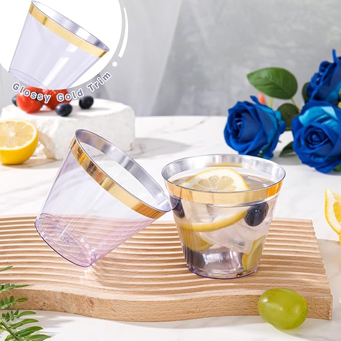 - Versatile Use for Every Celebration: These clear purple and gold plastic cups are ideal for a wide range of events, such as summer, pool party, holidays, weddings, birthdays, beach parties, Halloween, Thanksgiving, Christmas party, and gatherings; the elegant gold rim design of the plastic wine cups for party suits both casual and formal settings.