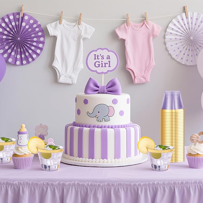 supernal 100 Pack Purple Plastic Cups, 9 Oz Clear Purple Disposable Cups with Gold Rimmed - Plastic Wine/Cocktail Glasses, Disposable Bridal/Shower Baby Shower Cup Perfect for Party & Wedding