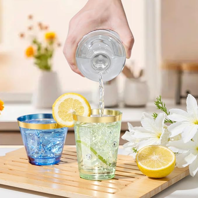 - Perfect for Any Occasion: These green and gold plastic cups are ideal for a wide range of events, such as weddings, birthdays, holidays, summer, pool party, beach parties, Halloween, Thanksgiving, Christmas party, and gatherings; the elegant gold rim design of the disposable cocktail glasses for party suits both casual and formal settings
