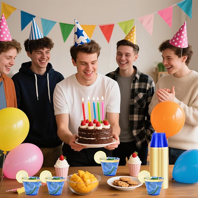- Bright Cute Color Design: These blue cups are crystal clear and have a premium, elegant look; The blue like the sea exterior adds a sense of fashion, thus making these blue party cups suitable for any event; The luxurious gold rim adds a touch of sophistication, making these blue disposable cups look upscale and indicative of their value