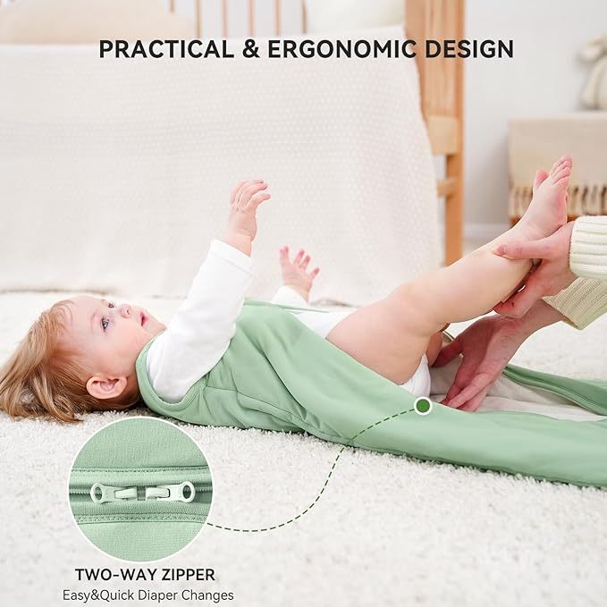 - Dual Zippers for Easy Diaper Changes: Our baby sleeping bag features a smart 2-way zipper design that opens from the top or bottom—making late-night diaper changes fast and stress-free without fully undressing your baby. A soft zipper guard protects delicate skin from scratches and irritation, ensuring comfort and safety.